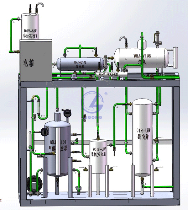 整套裝置由鋼制安裝框架、甲醇計量槽、甲醇汽化器、氣體混合器、氧化器、仿真儀表、就地計算機操作臺、、就地智能儀表控制上位監(jiān)控軟件、外置配套設備等組成,工藝路線簡潔清晰,現(xiàn)場儀表與通訊模塊有機結合,上位計算機控制,設置DCS界面及自動評分系統(tǒng)。
