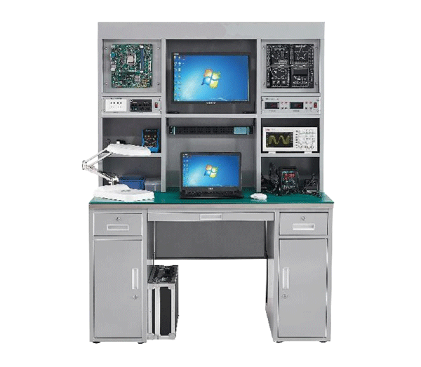 1、實訓(xùn)裝置可分層擺放顯示器、示波器、熱風(fēng)槍、恒溫焊臺、穩(wěn)壓電源、萬用表、放大鏡臺燈、維修常用工具及元器件和備品。