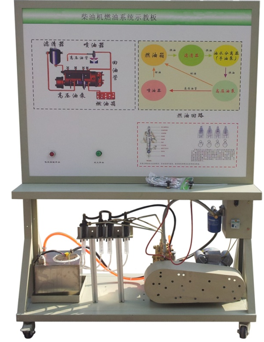 2.示教板面板采用耐創(chuàng)擊、耐污染、防火、防潮的高級(jí)鋁塑板,表面經(jīng)特殊工藝噴涂底漆處理;面板打印有永不褪色的彩色電路圖與工作原理示意圖;學(xué)員可直觀對(duì)照電路圖和實(shí)物,認(rèn)識(shí)和分析柴油發(fā)動(dòng)機(jī)燃油噴射系統(tǒng)的工作原理。