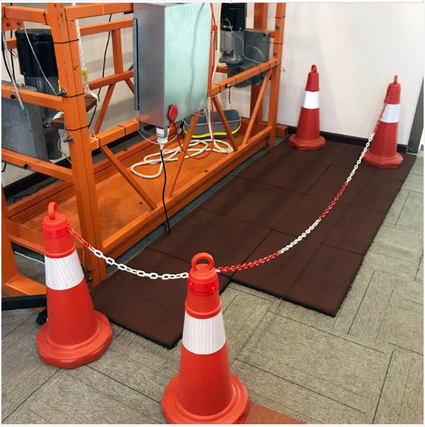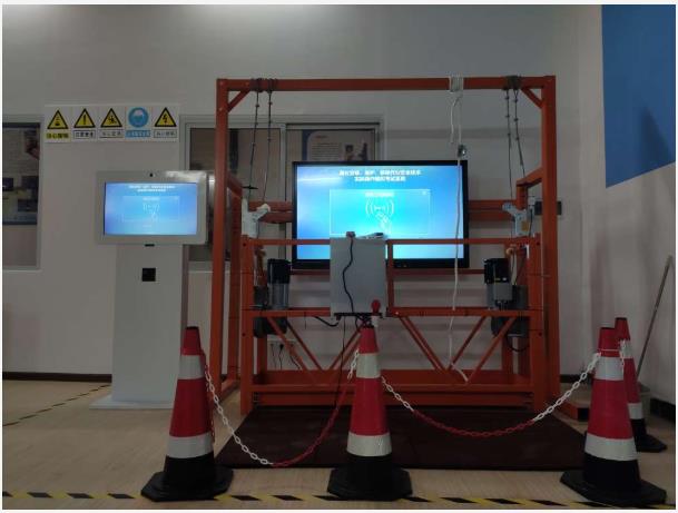 包含:電動吊籃、平臺桿件、腳手板、爬梯、安全帽、安全帶、安全保護繩、緊口工作服、觸控液晶一體機,