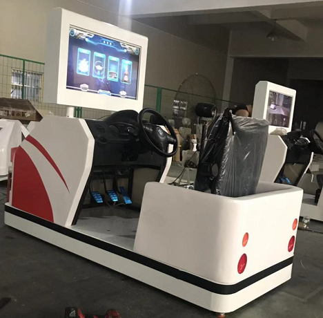 1.座艙外殼材質(zhì):玻璃鋼外殼外觀簡潔大方、時尚亮麗。儀表臺采用真車實件配置,轉(zhuǎn)向機構(gòu)采用真車方向機總成構(gòu)建,實車轉(zhuǎn)數(shù);檔位外罩采用堅固一體真車中央通道,具有真車實感。