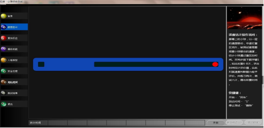 1.速度估計(jì)測(cè)試:用來(lái)檢測(cè)駕駛員對(duì)車(chē)速的預(yù)測(cè)判斷能力以及過(guò)早或過(guò)緩的反應(yīng)傾向。