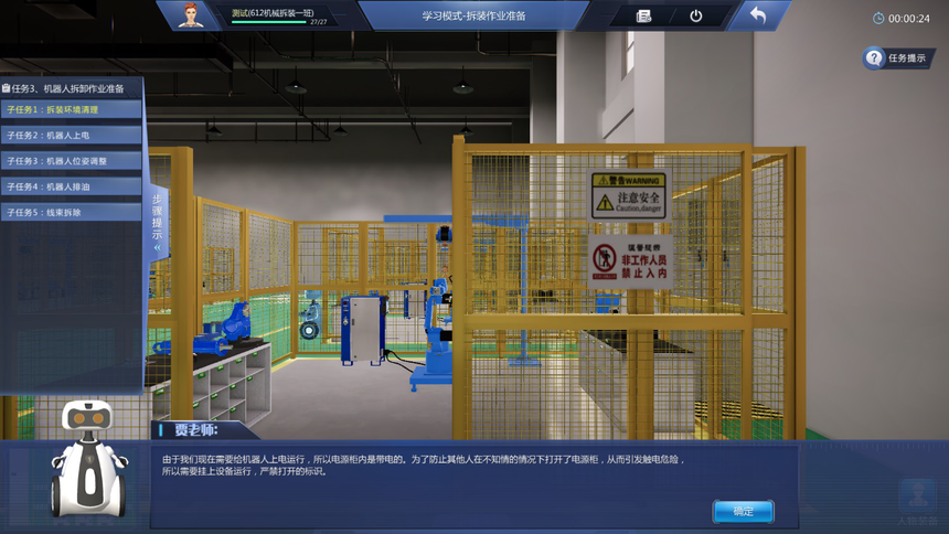 5、沉浸式體驗設(shè)計:選擇實際生產(chǎn)中典型工作任務(wù),融合了崗位職業(yè)技能與專業(yè)技術(shù),進行沉浸式學(xué)習(xí)情境設(shè)計,學(xué)習(xí)者通過實訓(xùn)系統(tǒng)中的任務(wù)提示、NPC指引、語音等完成具體任務(wù),逼近真實的實訓(xùn)操作。