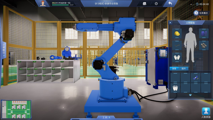 9、友好操作體驗設(shè)計:設(shè)置專用工具欄,可以通過工具欄中的快捷鍵快速選擇工具,提高實訓(xùn)系統(tǒng)使用效率,同時加深對工具的認識。地圖及快速跳轉(zhuǎn)、箭頭指示多形式導(dǎo)航,通過小地圖實現(xiàn)快速跳轉(zhuǎn)到機器人NPC獲得指引。地標(biāo)指引箭頭,有效提示下一任務(wù)的操作位置。