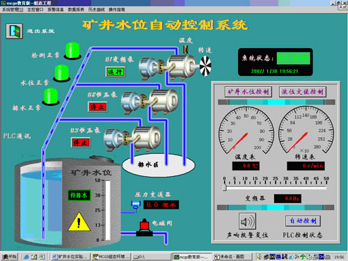礦井水位過程控制系統(tǒng)實驗裝置是針對目前各大、中型煤礦井的井涌水量變化導(dǎo)致礦井積水水位變化不定的情況,本企業(yè)研制了礦井水位過程控制系統(tǒng)實驗裝置。由于地下涌水量變化的隨機性和危險性,要求有一定規(guī)模的礦井必須配備有大型的排水解決方案,本實驗臺是將大型的礦井水位自動控制系統(tǒng)進行功能上的再現(xiàn),模擬現(xiàn)場安全水位自動控制,通過使用本裝置,能讓學(xué)生了解現(xiàn)場控制的各種環(huán)節(jié)。