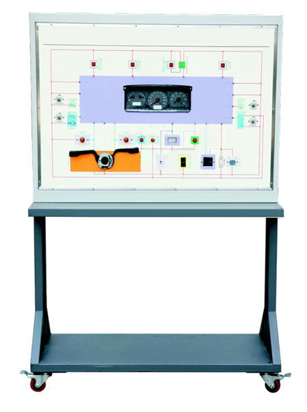 汽車儀表系統(tǒng)示教板完整展示了上海大眾桑塔納2000原車儀表系統(tǒng),設(shè)備包括大燈開關(guān)、組合開關(guān)、轉(zhuǎn)向燈、后窗加熱燈開關(guān)、行李箱指示燈開關(guān)、行李箱燈、制動(dòng)指示燈開關(guān)等汽車真實(shí)部件,其余的設(shè)備采用專用電路進(jìn)行模擬,能動(dòng)態(tài)演示汽車儀表系統(tǒng)的工作過(guò)程,面板上設(shè)有相關(guān)測(cè)試點(diǎn)便于教師利用儀器儀表對(duì)其測(cè)量。