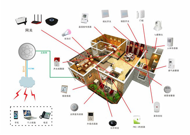 5、智能家居網(wǎng)關:智能家居網(wǎng)關作為整體系統(tǒng)的核心設備,建立zigbee無線網(wǎng)絡,與各個智能終端相連,運行在手機端的管理軟件向智能家居網(wǎng)關發(fā)送命令可統(tǒng)一管理各傳感器與窗簾電機、家用電器、燈光系統(tǒng)等設備。軟件把傳感器與電器聯(lián)系起來,使之成為一個整體,互相影響,互相協(xié)作運行,實現(xiàn)對家居電器的自動化管理、安防自動化等功能。軟件提供遠程服務,用戶通過軟件可實施遠程控制家電,并實現(xiàn)遠程監(jiān)控。
