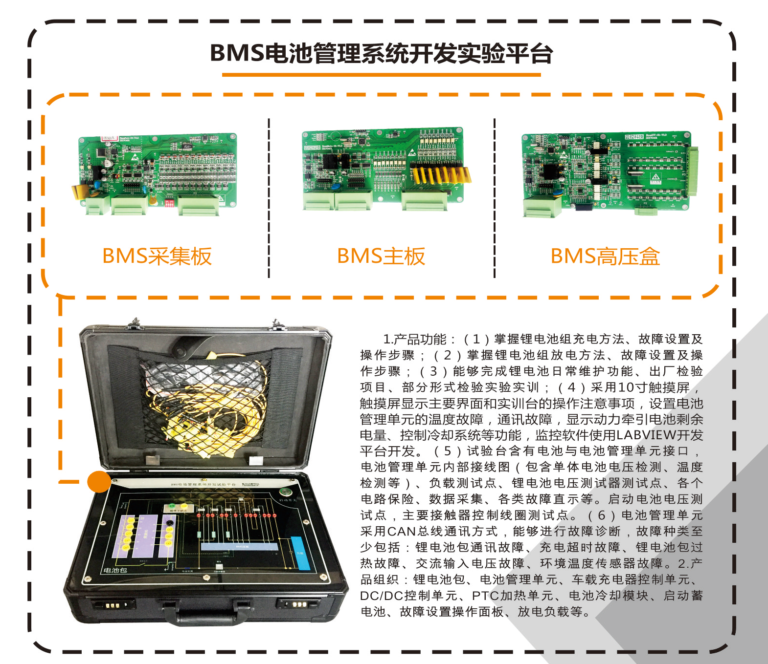 一 、 產(chǎn)品功能: ( 1 ) 掌握鐵鋰電池組充電方法、故障設(shè)置以及操作步驟; ( 2 )掌握鐵鋰電池組放電方法、故障設(shè)置以及操作步驟; ( 3 )能夠完成鋰電池日常維護...