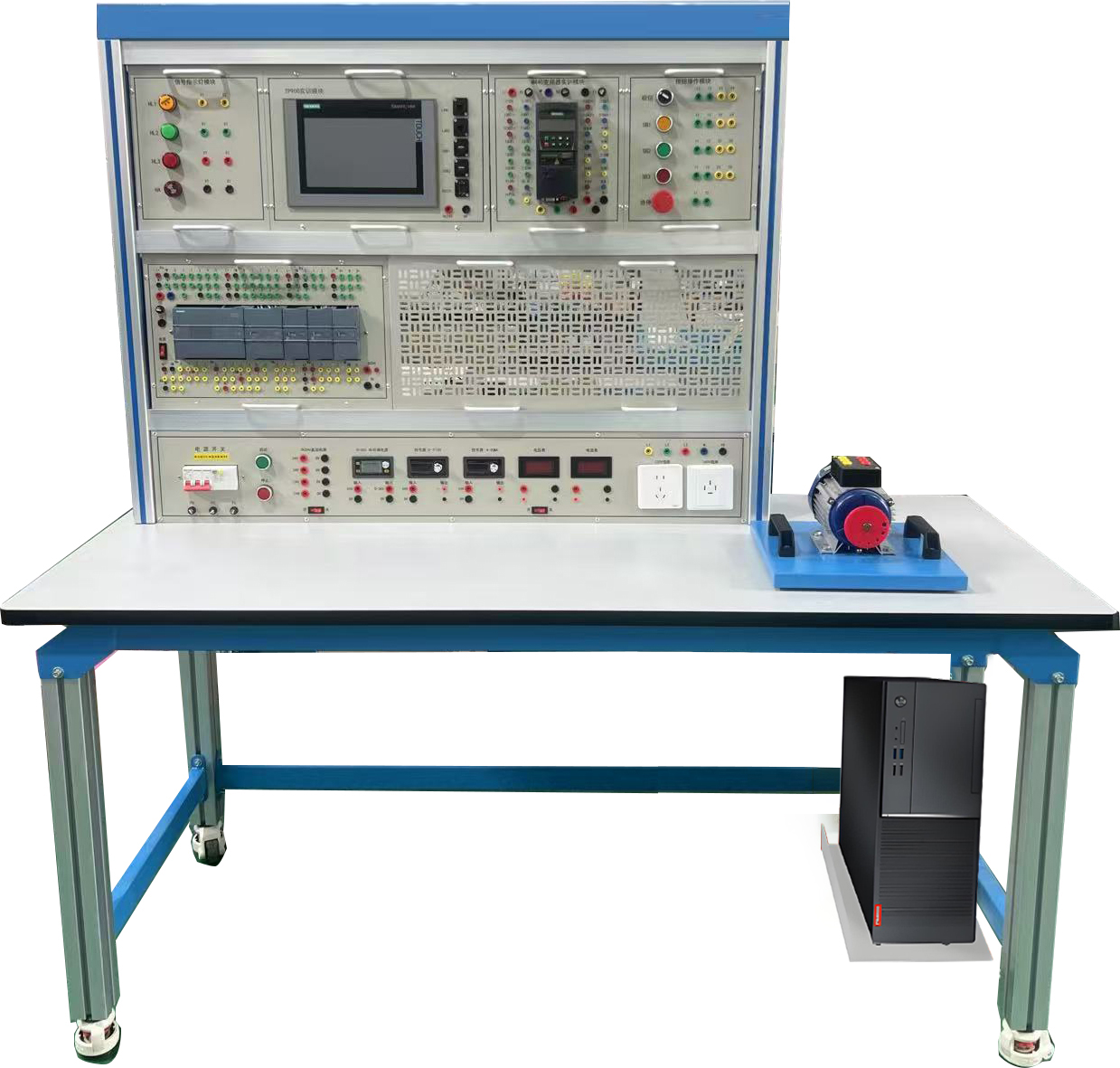 一 、技術(shù)指標(biāo) 1、采用鋁合金框架與網(wǎng)孔板組合成立式實(shí)訓(xùn)展板結(jié)構(gòu)形式,有腳輪。 2、實(shí)訓(xùn)臺(tái)尺寸為 1800 mm(高)800 mm(寬)465 mm(底座深)。 3、實(shí)訓(xùn)臺(tái)上安裝西門(mén)子...