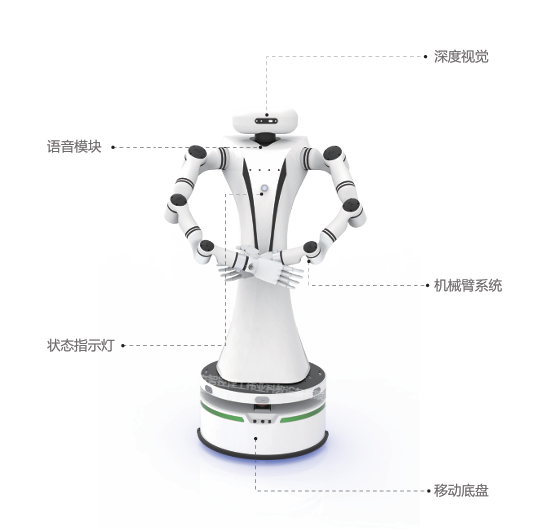 一.機(jī)器人整體組成:不少于1個(gè)主控模塊、不少于1個(gè)移動(dòng)底盤、不少于2條七軸機(jī)械臂、不少于1個(gè)末端執(zhí)行器、不少于1個(gè)深度視覺傳感器; 二.機(jī)器人整體尺寸:總高不大...
