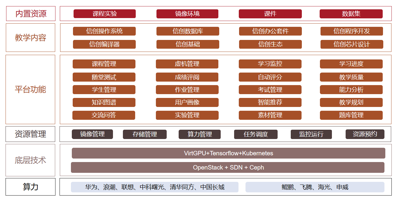 一、建設(shè)方案 高校信創(chuàng)實驗室主要包括數(shù)智化實踐教學平臺和信創(chuàng)課程資源。 數(shù)智化實踐教學平臺采用國產(chǎn)化技術(shù),實現(xiàn)云計算資源的集中共享、統(tǒng)一調(diào)度管理的技術(shù)創(chuàng)...
