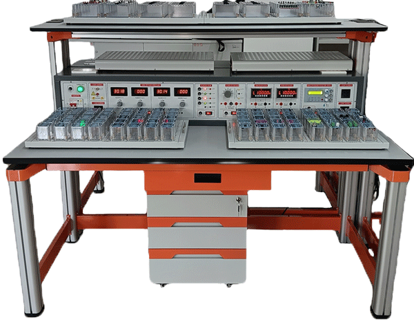 電源儀表控制屏箱體采用鐵質(zhì)雙層亞光密紋噴塑結(jié)構(gòu),鋼質(zhì)面板。左邊是安全控制、交直流電源、信號源、測量電表等;右邊是示波器等儀器放置箱,并配有多組外部儀器交流工作電源箱。