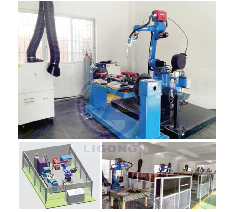 LGH-HJ12型 工業(yè)機(jī)器人焊接實(shí)訓(xùn)平臺(tái)由LG-ZN612型工業(yè)機(jī)器人和焊機(jī),送絲機(jī),焊槍及清槍裝置,保護(hù)氣體設(shè)備,工作臺(tái)、工裝夾具、變位機(jī),安全系統(tǒng)(圍欄、光柵、自動(dòng)門、門鎖等),排煙系統(tǒng)等組成。工業(yè)機(jī)器人焊接工作站可以完成不同工件的直縫焊,船型焊,弧形焊等工作:利用計(jì)算機(jī)控制下的連續(xù)軌跡或者點(diǎn)位控制、焊接跟蹤技術(shù)、焊接檢測(cè)技術(shù)等,實(shí)現(xiàn)生產(chǎn)中各種焊接需求。