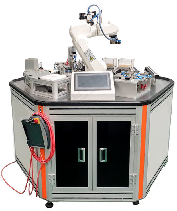 LGJ-LM03型 工業(yè)機(jī)器人組合裝配實(shí)訓(xùn)裝置(中性筆裝配線) 以ABB IRB 120-5/0.9負(fù)載5Kg的六自由度工業(yè)機(jī)器人(或者埃夫特ER3負(fù)載3Kg)為實(shí)訓(xùn)對(duì)象,配置多種應(yīng)用模塊,以完成中性筆自動(dòng)裝配為切入點(diǎn)體現(xiàn)機(jī)器人的各種典型應(yīng)用,在人才培養(yǎng)上能完成機(jī)器人技術(shù)的基礎(chǔ)性培訓(xùn)教學(xué),完成機(jī)器人初級(jí)及中級(jí)實(shí)訓(xùn)目標(biāo)。