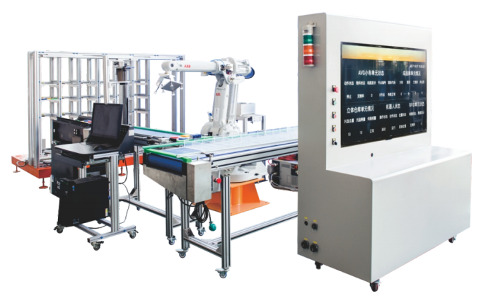 LGY-ZN021A型工業(yè)機器人智能傳輸分揀控制實訓(xùn)系統(tǒng)由工業(yè)機器人作為主體控制對象,能滿足模擬生產(chǎn)過程中的上料、AGV傳輸、圖像識別、分揀、入垛等環(huán)節(jié),裝置中包括工業(yè)機器人、PLC控制系統(tǒng)、AGV小車、皮帶傳輸環(huán)節(jié)、視覺檢測系統(tǒng)、RFID系統(tǒng)、分揀裝置、原材料立體倉儲等單元,同時設(shè)備加入電子看板系統(tǒng),用來顯示生產(chǎn)環(huán)節(jié)。