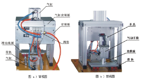 該配置配有多種類型的氣缸、電磁閥,磁性開關(guān),如:單出桿氣缸、單出雙桿氣缸、旋轉(zhuǎn)氣缸等氣動(dòng)執(zhí)行元件、單控電磁閥、雙控電磁閥和磁性開關(guān)等,基于這些氣動(dòng)控制元件,可完成下列氣動(dòng)技術(shù)的安裝調(diào)試訓(xùn)練任務(wù):