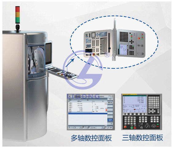 3、平臺上的五軸和三軸的控制面板區(qū)域,通過簡單的轉(zhuǎn)軸旋轉(zhuǎn),就可以方便的切換。