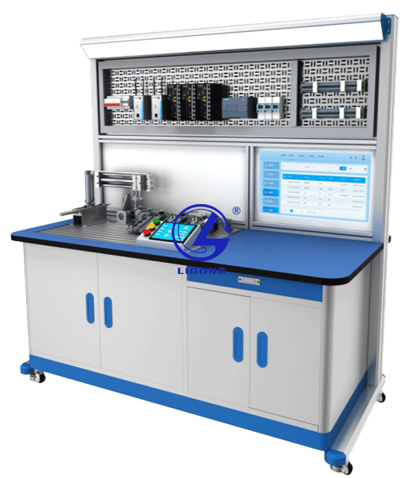 本設(shè)備采用鋁合金結(jié)構(gòu)搭建而成,桌面采用導軌式鋁型材和實芯板拼接而成,導軌式鋁型材桌面用于安裝機電一體化控制對象,實芯板桌面用于放置電腦和學生學習之用。工作臺前立面用于安裝電源裝置和電氣控制系統(tǒng)及扁平等。安裝版采用網(wǎng)孔板的形式,固定方式為窗戶開關(guān)結(jié)構(gòu),方便學員安裝和檢修電控系統(tǒng)。