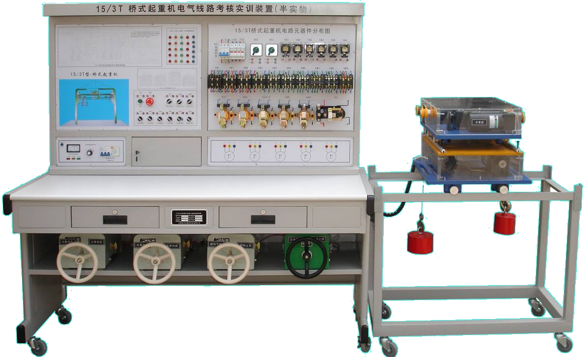 LGDQ-15/3T型 橋式起重機(jī)電氣技能實訓(xùn)考核裝置(半實物可選)通過接口把機(jī)床電氣部分和機(jī)床的實物模型連接起來,將機(jī)床的各運(yùn)動過程全部展現(xiàn)出來,更加真實,直觀,本裝置適合于維修電工初、中、高級技能鑒定中有關(guān)機(jī)床電氣部分的培訓(xùn)考核。
