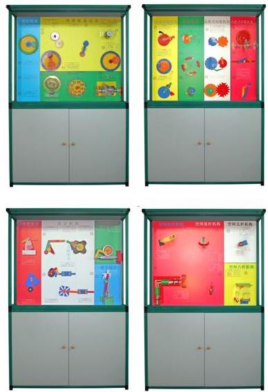 本設(shè)備是根據(jù)大中專院校、職業(yè)學(xué)校的教學(xué)大綱設(shè)計(jì)的機(jī)械陳列柜,《機(jī)械基礎(chǔ)》電化教學(xué)設(shè)備。陳列柜共分十個(gè)柜和一個(gè)電腦控制臺(tái),進(jìn)行多媒體聲控同步解說(shuō)演示。由PC機(jī)電腦控制順序或任選運(yùn)行每個(gè)柜模型動(dòng)作,同時(shí)電腦播放圖像或三維動(dòng)畫(huà)同步模型動(dòng)作。