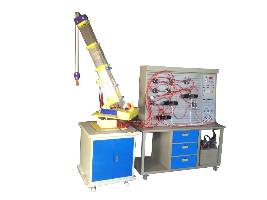 3、透明起重機(jī)液壓實(shí)訓(xùn)臺(tái)可模擬真實(shí)起重機(jī)工作裝置的各種動(dòng)作。液壓系統(tǒng)采用進(jìn)口透明機(jī)玻璃液壓元件、透明尼龍軟管搭接而成,液壓元件結(jié)構(gòu)、工作原理,液壓回路工作原理一目了然。整個(gè)實(shí)訓(xùn)臺(tái)具有形象、直觀、方便、可靠等優(yōu)點(diǎn)。