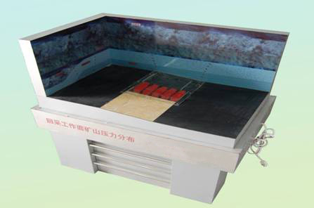LG-MHC01型 回采工作面礦山壓力分布演示裝置采用鋁塑板、型鋼、有機玻璃、發(fā)光二極管、木結(jié)構(gòu)等,直觀反映出工作面巷道布置、設(shè)備情況、模擬演示生產(chǎn)系統(tǒng)、前后方移動支撐壓力的應(yīng)力分布、工作面兩側(cè)固定壓力的分布。