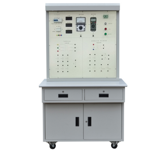 (1)實訓(xùn)臺主體部分采用全鋼結(jié)構(gòu),鋼板亞光噴塑,美觀耐用,臺面采用鋁塑板印制而成,整個實訓(xùn)臺由漏電保護(hù)開關(guān)、熔斷器、開關(guān)電源、數(shù)顯計時器、智能刷卡啟動電路板、三相變壓器、單相變壓器、整流管、穩(wěn)壓管、交流接觸器、數(shù)字電壓表、數(shù)字電流表、指針萬用表、數(shù)字萬用表、照明日光燈、帶鎖開關(guān)、按鈕開關(guān)、負(fù)載電阻和安全接線柱等組成。