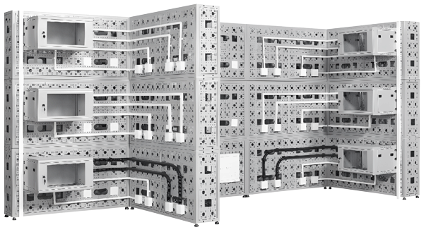 4、多功能墻面模塊化設(shè)計(jì),分為不同功能的安裝區(qū)域,可以直觀模擬建筑物不同工作區(qū)域,如工作區(qū)布線、暗裝光纖入戶多媒體信息箱布線、機(jī)柜布線等。