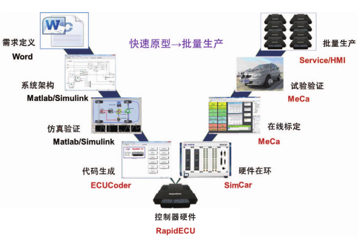 隨著人們對車輛舒適、安全、節(jié)能、環(huán)保等要求的日益提高,汽車智能化和電子化成為未來車輛技術(shù)的主要趨勢,由此對電子控制技術(shù)及開發(fā)者提出了更大的挑戰(zhàn)。對于國內(nèi)電控開發(fā)者而言,在 ECU 開發(fā)和產(chǎn)品化方面存在更大的困難,需要應(yīng)對更多的挑戰(zhàn)。ECU 主要包括控制器硬件和控制器軟件,其中的控制器軟件又包括基礎(chǔ)軟件與應(yīng)用軟件,應(yīng)用軟件決定了車輛駕駛體驗,是車輛及零部件子系統(tǒng)品牌差異化的主要體現(xiàn),是各大廠商自主研發(fā)的核心知識產(chǎn)權(quán),控制器硬件以及基礎(chǔ)軟件,是保證應(yīng)用軟件良好運行的平臺。在開發(fā)階段和產(chǎn)品化階段,傳統(tǒng)開發(fā)方式一般采用不同的平臺,這些平臺間的移植和驗證都存在較大的難度,需要花費大量的時間、精力以及昂貴的費用。對于剛剛起步的自主品牌在產(chǎn)量和成本的要求下,對于相對復(fù)雜的控制系統(tǒng),新產(chǎn)品的產(chǎn)品化幾乎成了難以完成的任務(wù)。