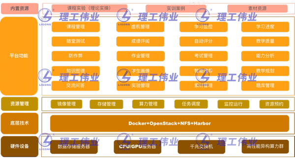 在教學(xué)方式上,提供了一站式教學(xué)服務(wù),可滿足用戶備課、授課、課堂互動(dòng)、課后作業(yè)、課程考核、實(shí)訓(xùn)拓展、教學(xué)考試和教學(xué)分析全過程教學(xué),并且針對(duì)不同學(xué)習(xí)程度的用戶定制打造實(shí)驗(yàn)學(xué)習(xí)環(huán)境和課程體系,讓教學(xué)更簡單,更高效。