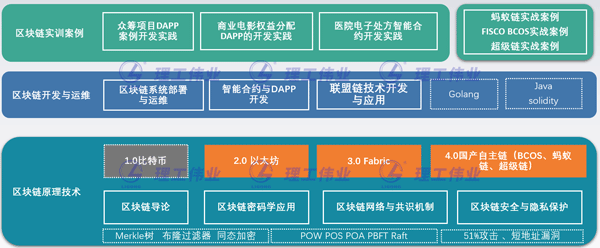 區(qū)塊鏈實(shí)驗(yàn)教學(xué)平臺(tái)內(nèi)置豐富的實(shí)驗(yàn)教學(xué)資源,課程涵蓋區(qū)塊鏈導(dǎo)論、區(qū)塊鏈密碼學(xué)應(yīng)用、區(qū)塊鏈網(wǎng)絡(luò)與共識(shí)機(jī)制、區(qū)塊鏈系統(tǒng)部署與運(yùn)維、智能合約與DAPP開發(fā)、聯(lián)盟鏈技術(shù)開發(fā)與應(yīng)用及典型開發(fā)案例等內(nèi)容,并配套PPT、教學(xué)講義、實(shí)驗(yàn)指導(dǎo)手冊(cè)等授課資料。