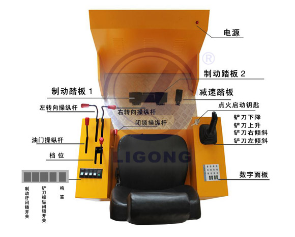 3.擁有左右行走踏板、減速踏板、鏟刀控制手柄、操縱箱、手拉式方向總成、檔位控制器、檔位閉鎖桿、油門拉桿、高集成數(shù)據(jù)電路板及各種功能調節(jié)組件等組成,操作時在視屏上顯示輸出與操作相對應的逼真三維場景并伴有相應語音提示;